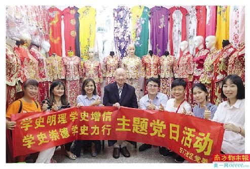 3月31日,罗湖区东门街道东门社区党委邀请东门步行街区百年老店——东升源第五代掌门人梁柏合口述“深圳墟”的历史。““记得1949年深圳解放前夕,我们店铺接到了组织上‘绣红旗(新中国国旗)’的委托,为此还专门买书学习。”现场,党员干部们围坐在他身边,听着这位现年93岁高龄的老人讲述他的东门故事。
