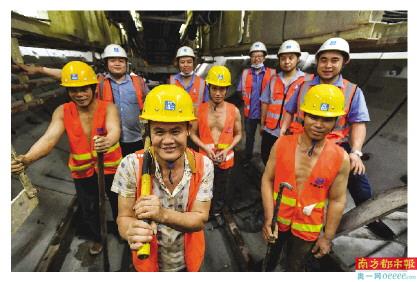 南都讯 记者张艳丽 通讯员肖佩 李荣霞 4月15日,距离地面深40米,近50℃高温地下,深圳地铁13号线留仙洞站—白芒站盾构区间正在紧张施工。令人难耐的高温是嚼石啃土、发力掘进的“遁地神器”盾构机散发出来的。因为施工需要,井下的工作人员要围绕这台巨型设备作业,在“蒸桑拿”的环境中工作、休息。