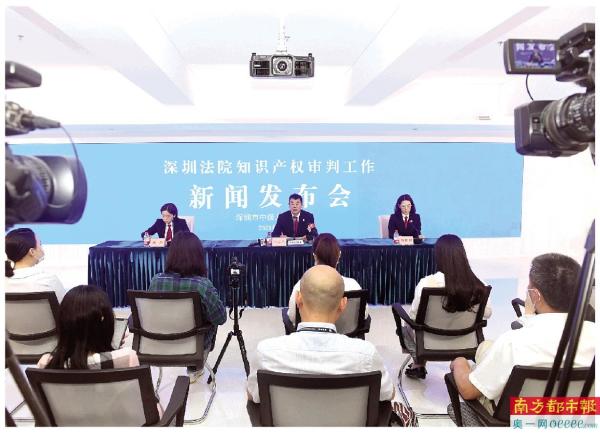 南都讯 记者徐全盛 昨天上午,深圳市中级人民法院召开新闻发布会,发布2020年度深圳法院知识产权司法保护状况白皮书、2020年度深圳法院知识产权创新案例和典型案例,深圳市中级人民法院党组成员、副院长胡志光,深圳知识产权法庭副庭长蒋筱熙出席发布会。