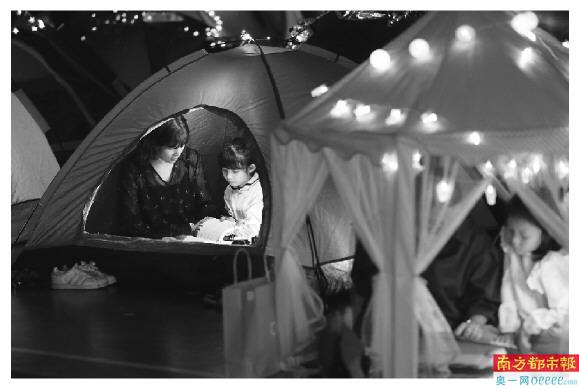 南都讯 记者谢粤蕾 满天星光之下,在帐篷里阅读,你体验过吗?4月19日晚,在红岭小学的校园里,夜空下的133顶帐篷陆陆续续被支开,家长和孩子用花、灯牌、气球、串灯等进行装饰布置,孩子们再把最喜爱的书带进去,或听家长讲述,或与小伙伴共读,开展了一场为时2小时的夜读之旅。这就是红岭小学“星光夜读,点亮心灯”亲子帐篷夜读活动首场活动的现场。