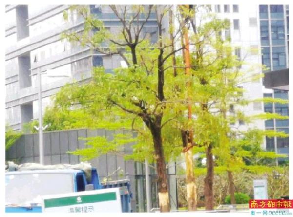 南都讯 记者谢萌 近期,有市民向南都反映称,3月末,南山区讯美科技广场内的部分树木树皮被扒光,部分树木根部被刨开,市民质疑讯美科技广场内的绿化管理不当。4月23日,深圳市中盈物业管理有限公司讯美客户服务中心回应,园区建设时栽种的部分树木长势不佳,考虑到台风季节临近,该部分苗木存在被台风吹倒的严重安全隐患。为确保园区企业员工的安全,同时提升园区绿化景观,公司委托专业园林绿化对讯美科技广场园区内所种植的苗木进行换种,该项工作已于2021年3月完成。