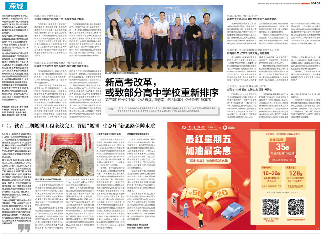深圳市第七次党代会于4月27日开幕,广东省委副书记、深圳市委书记王伟中在大会作报告中提及,深圳教育未来发展要“坚持把孩子们的事情办好”,要推动“高中教育多样化特色化发展”。4月27日第三期“校长面