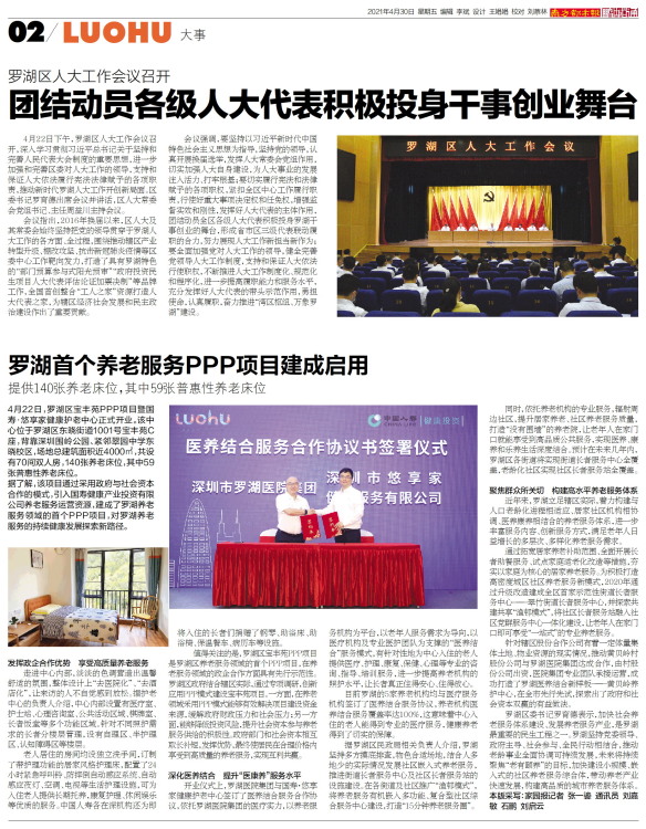 4月22日,罗湖区宝丰苑PPP项目暨国寿·悠享家健康护老中心正式开业。该中心位于罗湖区东晓街道1001号宝丰苑C座,背靠深圳围岭公园、紧邻翠园中学东晓校区,场地总建筑面积近4000㎡,共设有70间