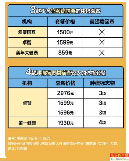 妇科类检查搭配不全面 多款套餐不含宫颈癌筛查,奥亚、瑞慈有套餐还在使用传统的宫颈涂片