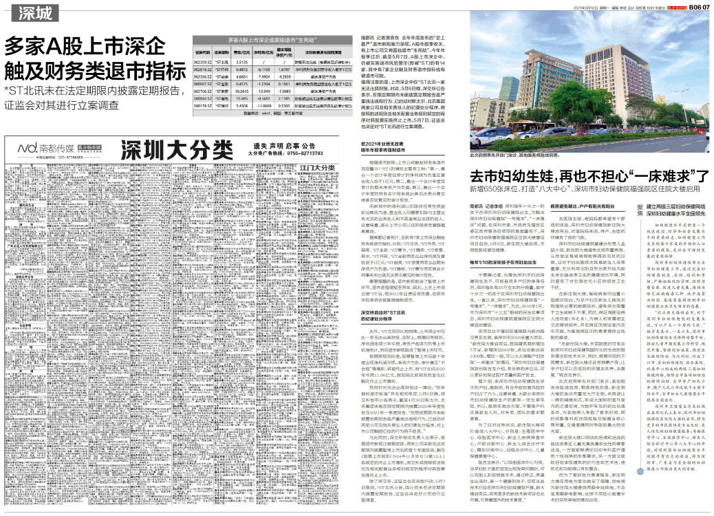 南都讯 记者黄良东 去年年底发布的“史上最严”退市新规威力渐现,A股年报季收关,有上市公司又将面临退市“生死劫”。今年年报季过后,截至5月7日,A股上市深企中,仍被实施退市风险警示(即被*ST)的