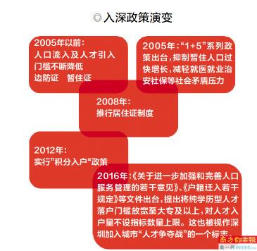 比如,深圳也曾实施过“收紧式”人口政策。2005年的8月,深圳出台实施《中共深圳市委、深圳市政府关于加强和完善人口管理的若干意见》,以及与之配套的《深圳市户籍迁入若干规定》、《深圳市暂住人口证件和居住管理办法》、《深圳市暂住人口就业管理办法》、《深圳市流动人口计划生育工作管理办法》、《深圳市暂住人口子女接受义务教育管理办法》(简称“1+5”文件)。这是深圳建市25年来第一套完整的人口政策,主要是为遏制暂住人口过快增长,减轻就医就业治安社保等社会矛盾压力。
