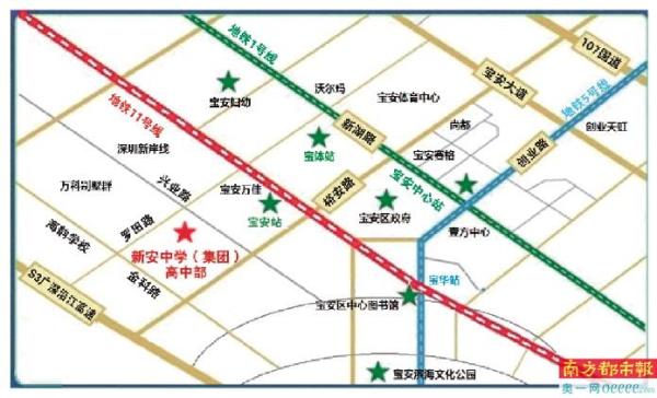 ●乘车路线:地铁11号线宝安站A出口南行200米;1号线宝体站D出口南行800米;5号线宝华站C出口西行900米;M235、M379、B828到新安中学高中部站;M330、M496、M560、高峰专线122路到新安中学高中部北站