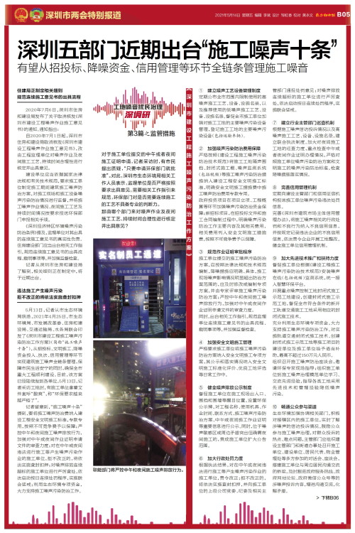 职能部门将严控中午和夜间施工噪声排放行为。 对于施工单位提交的中午或者夜间施工证明申请,记者采访时,有市民提出质疑,“只要申请环保部门就批准”。对此,深圳市生态环境局相关工