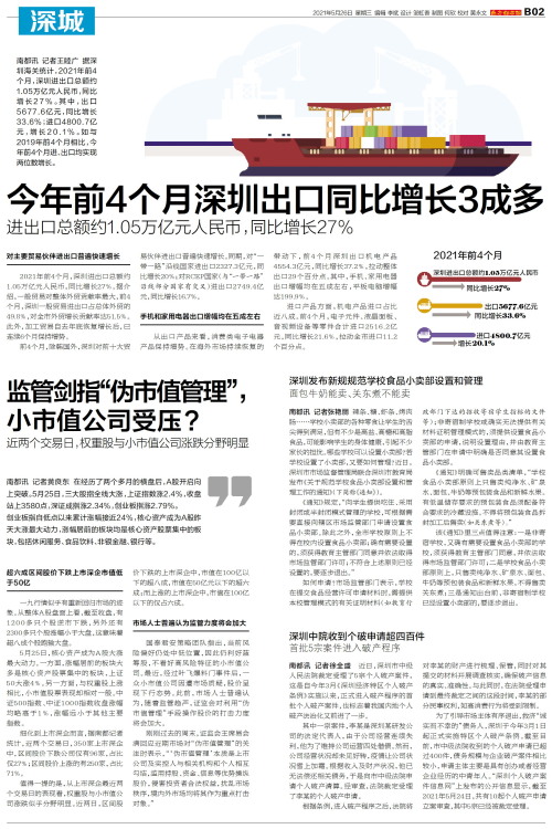 南都讯 记者王睦广 据深圳海关统计,2021年前4个月,深圳进出口总额约1.05万亿元人民币,同比增长27%。其中,出口5677.6亿元,同比增长33.6%;进口4800.7亿元,增长20.1%。如与