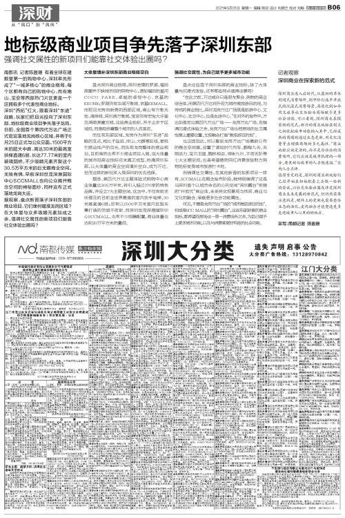 南都讯 记者陈盈珊 有着全球在建数量第一的购物中心,深圳率先形成了“一城多核心”的商业格局,每个区都有自己的购物中心,而在南山、宝安等西部热门片区更是一个区拥有多个代表性商业地标。深圳“西拓”红火