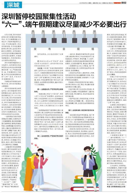 深圳暂停校园聚集性活动“六一”、端午假期建议尽量减少不必要出行