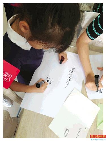 小朋友们在纸上写下对防疫工作人员的祝福。