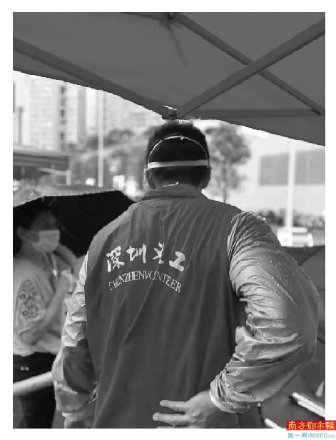 深圳各区的志愿者也纷纷行动,烈日暴晒和暴雨冲刷,都没能阻挡他们的脚步。5月31日晚上,深圳遭遇雷雨天气,盐田区的各核酸检测点的医务人员和义工们坚持撑伞开展服务,他们的最美身影被居民们放在朋友圈转发。