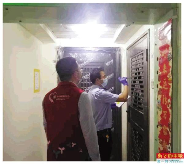 东门社区党委书记熊博带领工作人员上门动员相关人员前去检测核酸。
