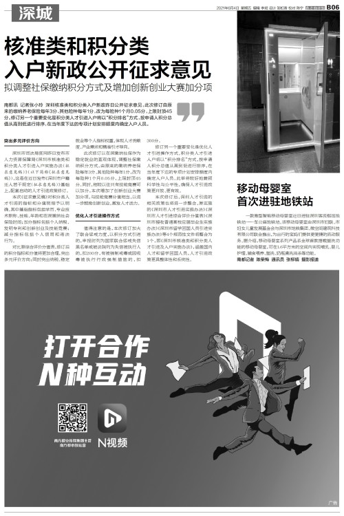 南都讯 记者张小玲 深圳核准类和积分类入户新政昨日公开征求意见,此次修订由原来的缴纳养老保险每年3分、其他险种每年1分,改为每险种1个月0.05分,上限封顶45分。修订另一个重要变化是积分类人才引进入