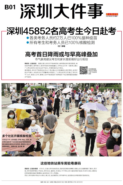 南都讯 记者程昆 南都记者从深圳市气象局获悉,高考期间深圳降雨频密,局地或有暴雨。高考首日,降雨可能和早高峰叠加,对考生出行有一定影响,建议广大考生和家长及时关注天气变化,并提前做好出行规划。高考期间
