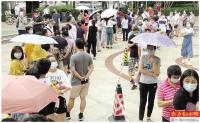 6月6日下午,深圳福田、罗湖、南山、龙华、宝安等区域的多个社区组织居民开展核酸检测。图为福田区莲花北村采样点,居民在小区小广场有序排队。 南都记者 赵炎雄 摄