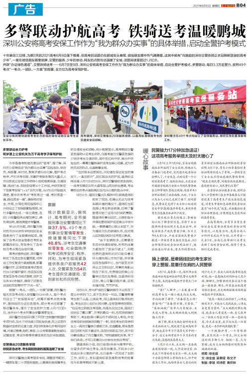 多警联动护航高考 铁骑送考温暖鹏城