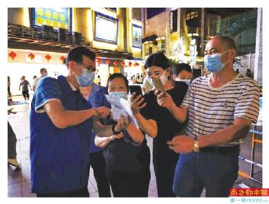 “请提前扫描i深圳,调出健康码,以便快速检测核酸。”“请问您几口人检测,小孩健康码也扫了吗?”……6月1日中午,根据东门街道抗疫需求,区人力资源局迅速组建了第二批抗疫队伍,24名党员和干部职工分编为四个小组,分赴各社区防控任务点,开展搭建检测点、接送及疏导群众、指引排队、维持现场秩序、登记信息、测量体温以及帮助年长者扫码申报信息、应对各种突发状况等工作,现场,队员们根据核酸检测、疫苗接种等不同要求,耐心地询问着、指引着。