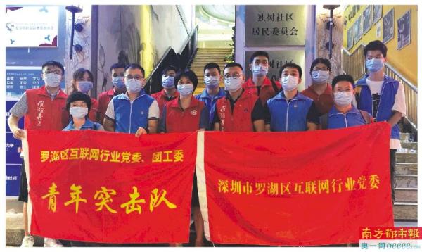 6月2日,深圳市互联网行业党委发出致全市互联网行业广大共产党员的倡议书,罗湖区两新组织党工委也发出“凝心聚力抗疫情”的号召。罗湖区互联网行业党委、团工委迅速响应行动,组织辖区互联网企业党支部成立“抗疫小分队”,以“线上+线下”“街道吹哨、队员报道”“党建带团建”等形式,积极投入疫情防控阻击战中,让党旗在抗疫一线高高飘扬。