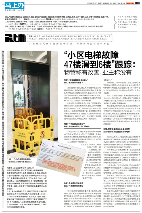 被点名单位深圳市茂业(集团)有限公司、崇德物业管理(深圳)有限公司介入处理单位罗湖市场监督管理局翠竹所、深圳市特种设备安全检验研究院南都讯 见习记者覃仕林 近期,深圳市罗湖区茂业·德弘天下华府小区电梯