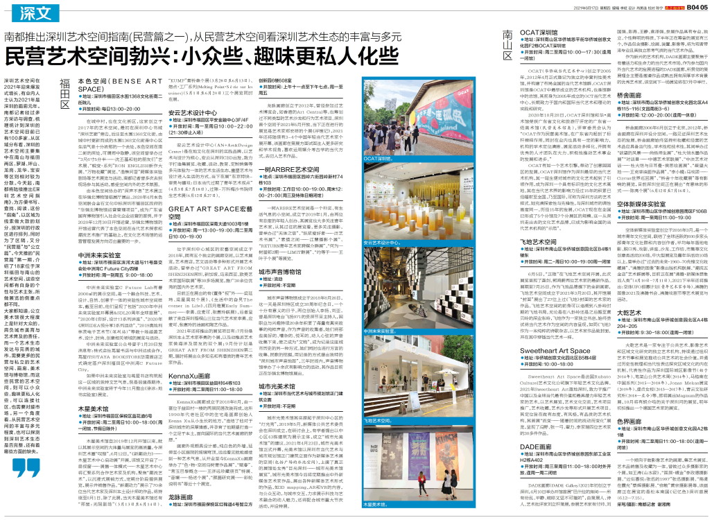 深圳艺术空间在2021年迎来爆发式增长,有业内人士认为2021年是深圳的画廊元年。南都记者经过多方采访与调查,梳理统计到深圳的艺术空间目前已有100多家,从区域分布看,深圳的艺术空间主要集中在南山与福