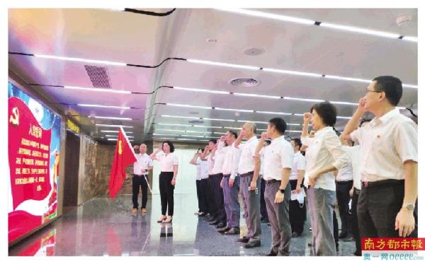 区纪委监委党总支全体党员在深圳国贸中心历史陈列馆重温入党誓词。