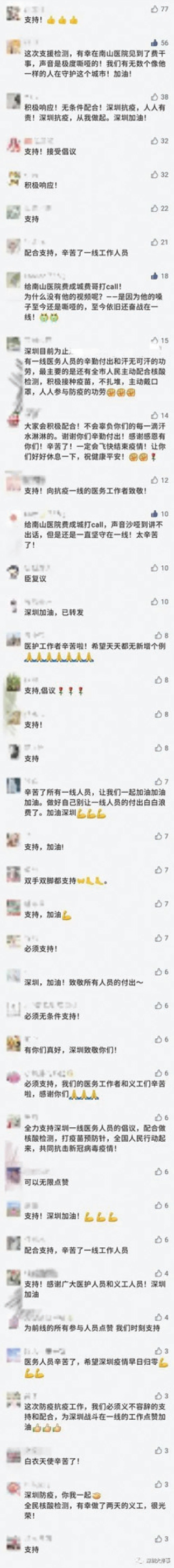 一个多星期前,南都和奋战在抗疫一线的深圳医护人员共同发起倡议——#深圳战疫,你我一起!#。留言区里,倡议一呼百应,文字虽然无声,却让人感受到深圳人强大的凝聚力。其实,在现实生活中,每一个深圳人也用自己的实际行动,积极地、无条件地配合深圳战疫工作。