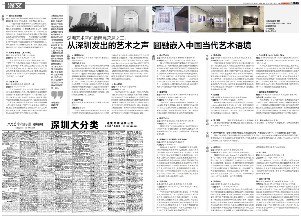 深圳的艺术空间分布在全市各区,近年来在城市非中心区域出现的富有特色的创意园区与艺术空间也逐渐增多。本篇深圳艺术空间指南(民营篇之三)将介绍分布在罗湖、龙华、龙岗、宝安、大鹏、坪山、南山等各区的民营