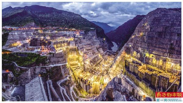 ←白鹤滩水电站——全球第二大、在建最大水电站,总装机容量16000兆瓦,创下在建规模、地下洞室群规模、单机容量1000兆瓦等多项世界第一。