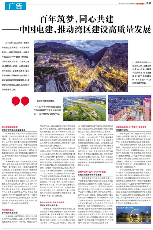 推进粤港澳大湾区建设,是党中央作出的重大决策部署,是国家的重大战略之一。中国电建以党建为引领,积极响应党中央的号召,全面推动粤港澳大湾区高质量发展。