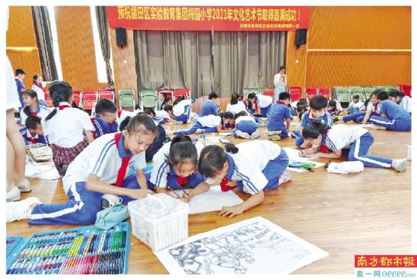 这些充满童真童趣的作品,满载着红色精神,满载着少年学子对党的深情。与此同时,用艺术形式咏颂党史党恩的活动,也在如火如荼地接力与开展中。5月21日,福田区实验教育集团梅香学校庆祝建党100周年系列主题活动——“红色的五月,艺术的花海”首届艺术节在该校报告厅隆重上演。在这次艺术节中,又诞生了一大批优秀的艺术作品。