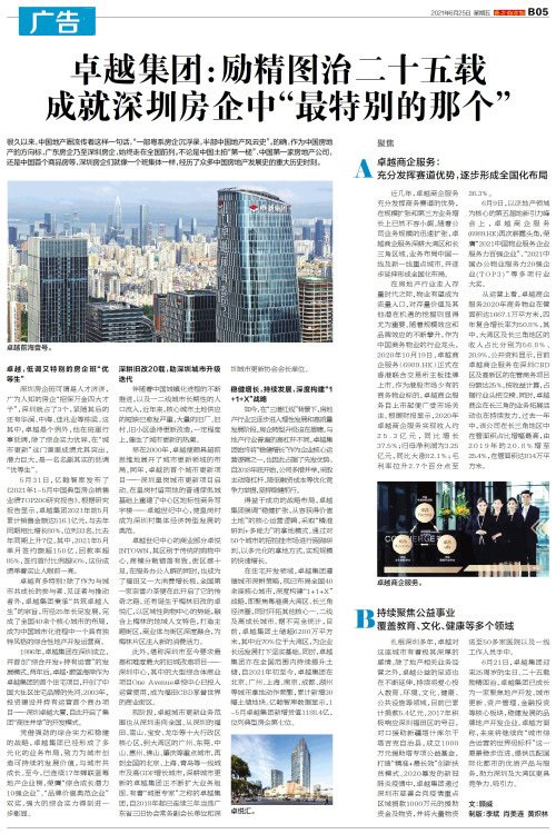 卓越集团:励精图治二十五载 成就深圳房企中“最特别的那个”