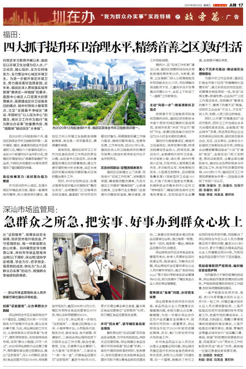 自党史学习教育开展以来,福田区以环境卫生治理为切入点,广泛动员、精心组织、全方位持续发力,全力整治中心城区环境卫生。为进一步提升辖区环境卫生,努力建设美好宜居家园,近年来,福田区深入贯彻落实城市管