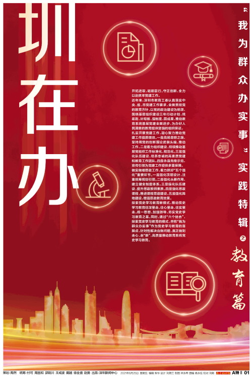 开拓进取,砥砺前行。守正创新,全力以赴抓牢党建工作。近年来,深圳市教育工委认真落实中央、省、市党建工作要求,全面贯彻党的教育方针,以党的政治建设为统领,围绕基层组织建设三年行动计划,找差距、补短板