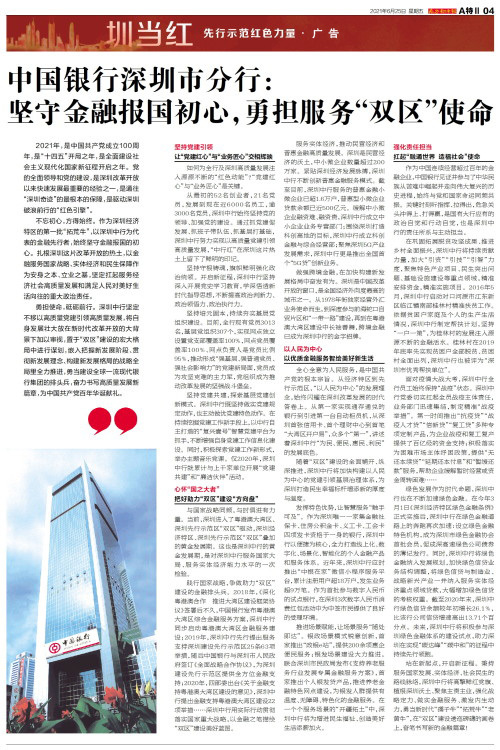 中国银行深圳市分行:坚守金融报国初心,勇担服务“双区”使命