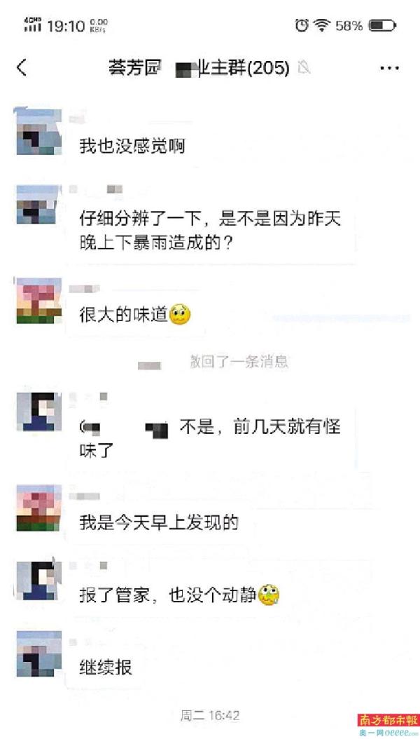 6月23日,南山区荟芳园小区居民陈女士(化名)向南都记者反映称,22日有邻居在群里反映家中的水有臭味,而且气味越来越重,每栋楼的业主都向物管反映了问题。