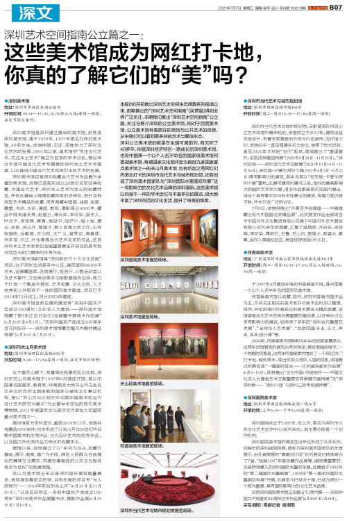 本报自6月初推出深圳艺术空间生态调查系列报道以来,前期推出的“深圳艺术空间指南”(民营篇)得到业界广泛关注,本期我们推出“深圳艺术空间指南”公立篇,关注与推介深圳的公立美术馆。相对于民营美术馆,公