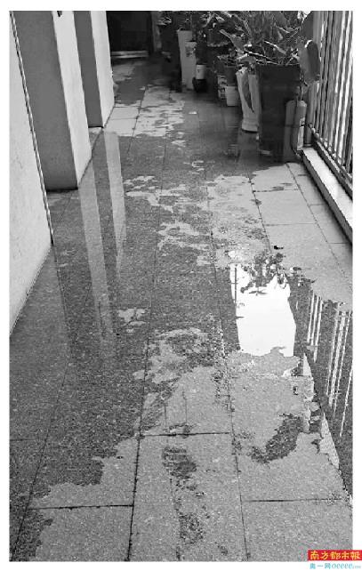 业主反映下大雨时电梯里就会灌水,像水帘洞一样。 业主供图