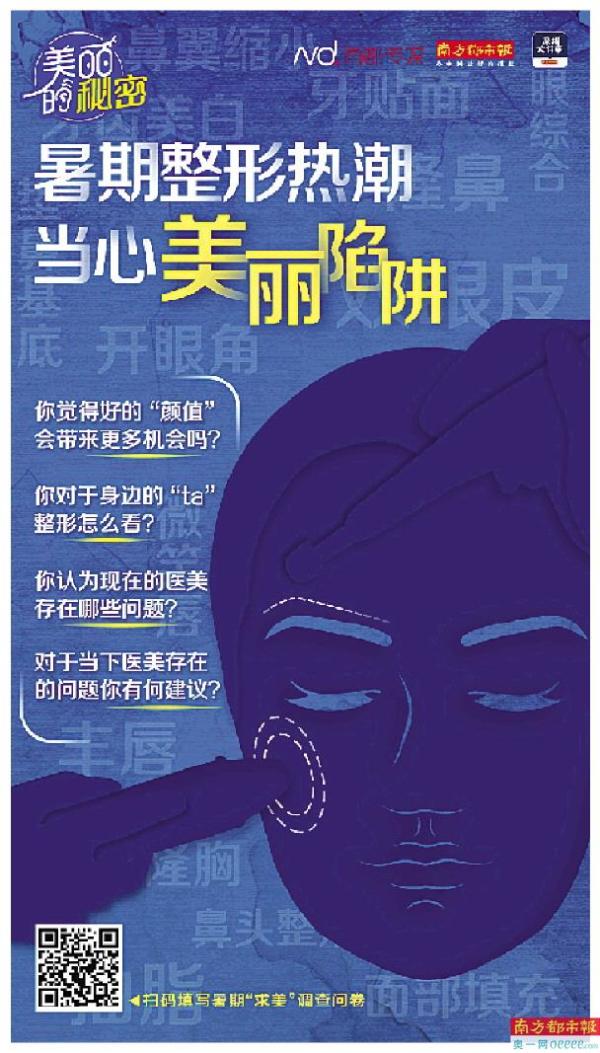 你是怎么看待暑期医美整形热潮的?在医美消费过程中你遇到过哪些“美丽陷阱”?赶紧扫码填写问卷,把你的想法告诉我们吧。