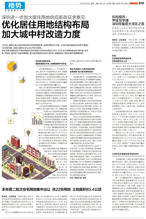 南都讯 记者黄璐 南都记者从深圳市规划和自然资源局获知,按照自然资源部“两集中”供地要求和《深圳市2021年度建设用地供应计划》,全市本年度第二批次共计22宗住宅用地于7月9日公开挂牌出让。 此
