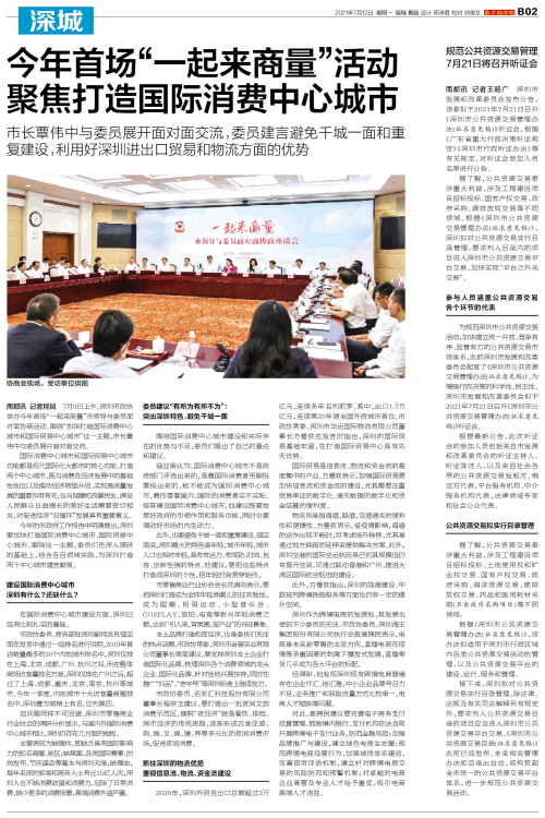 南都讯 记者程昆 7月9日上午,深圳市政协举办今年首场“一起来商量”市领导与委员面对面协商活动。围绕“加快打造国际消费中心城市和国际贸易中心城市”这一主题,市长覃伟中与委员展开面对面交流。