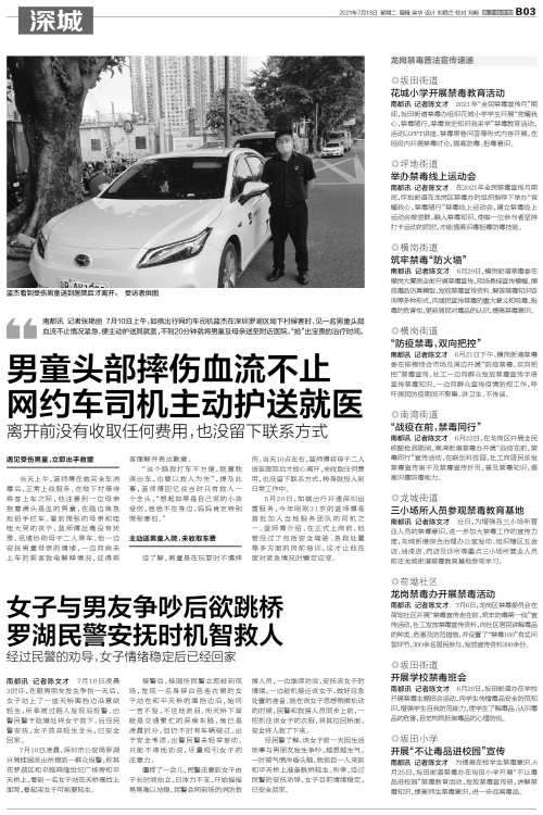 南都讯 记者张艳丽 7月10日上午,如祺出行网约车司机蓝杰在深圳罗湖区坳下村候客时,见一名男童头部血流不止情况紧急,便主动护送其就医,不到20分钟就将男童及母亲送至附近医院,“抢”出宝贵的治疗时间