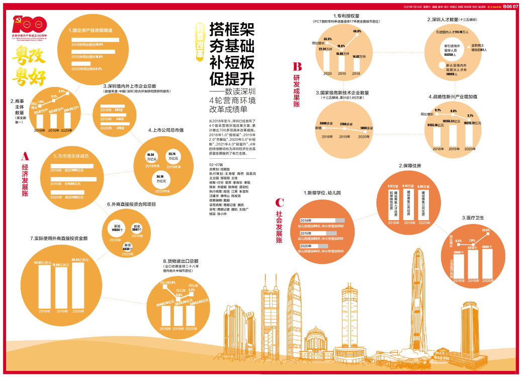 数看改革 从2018年至今,深圳已经发布了4个版本营商环境改革方案,累计推出700多项具体改革措施。2018年1.0“搭框架”、2019年2.0“夯基础”、2020年3.0“补短板”,2