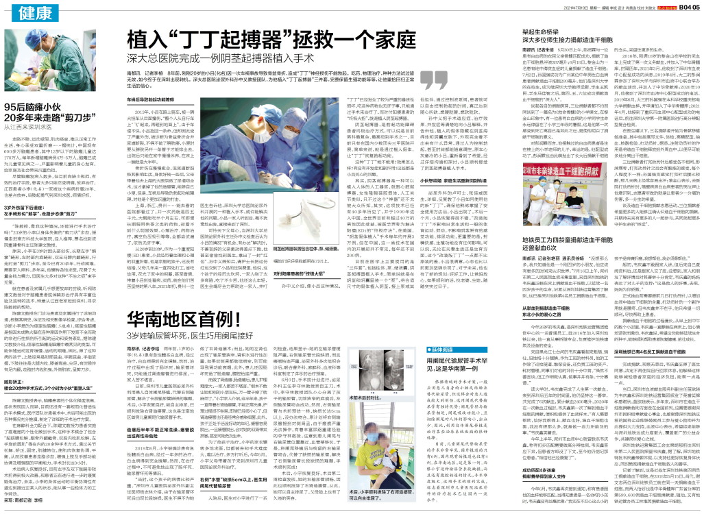 南都讯 记者张艳丽 通讯员徐畅 “没想那么多,我只知道他是一个刚四岁的小朋友,他应该有更多的时间来认识世界。”7月16日上午,深圳市第二人民医院血液采集室里,来自深圳地铁的韦庆鑫正躺在床上捐献造血