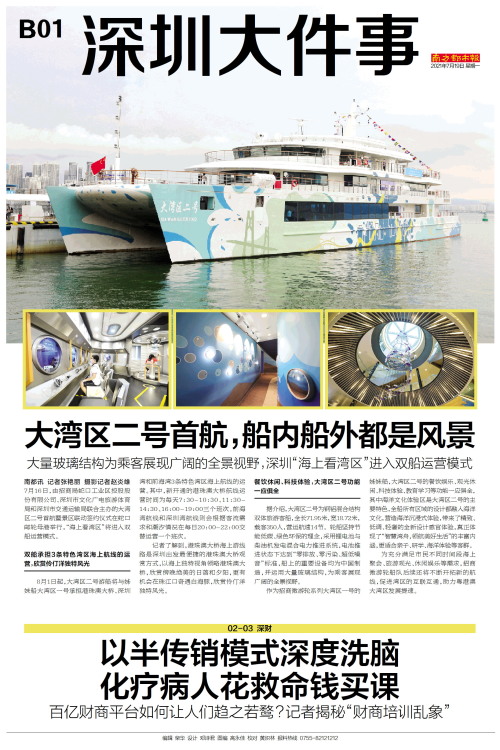 南都讯 记者张艳丽 摄影记者赵炎雄 7月16日,由招商局蛇口工业区控股股份有限公司、深圳市文化广电旅游体育局和深圳市交通运输局联合主办的大湾区二号首航暨景区联动签约仪式在蛇口邮轮母港举行,“海上看