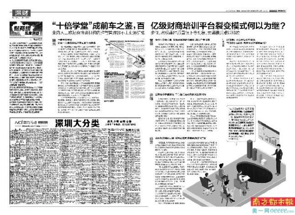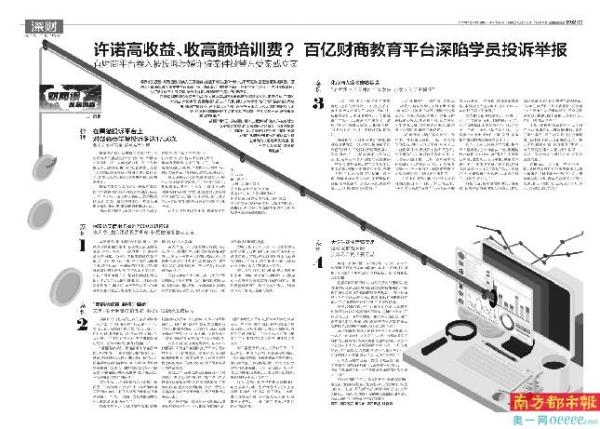 前有十倍学堂被央视曝光已人去楼空,近日,南都消费金融研究课题组加入多个平台推出的理财课发现,为吸引学员报名理财课,平台向零基础、零经验的学员夸大投资回报,误导学员形成“投资可轻松赚钱”的认知。与此同时,课程体系除了传递金融知识之外,讲师还向学员推荐具体理财产品,指导学员建立资产管理策略,这些服务已涉及专业投顾,而平台对课程讲师并无专业资质要求。