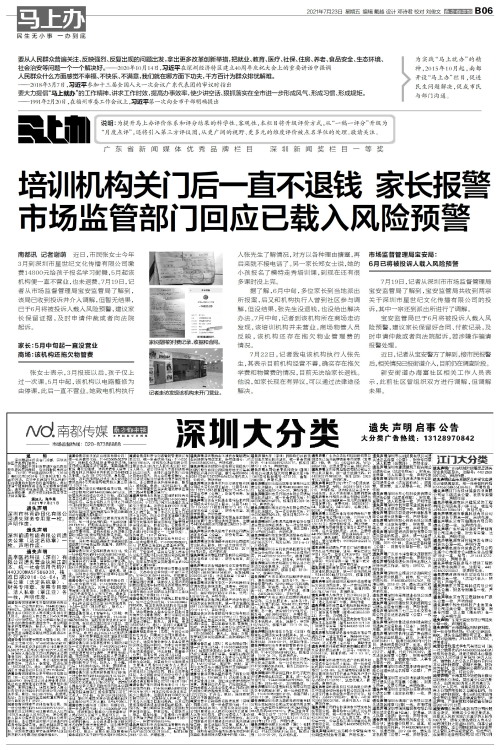培训机构关门后一直不退钱 家长报警 市场监管部门回应已载入风险预警