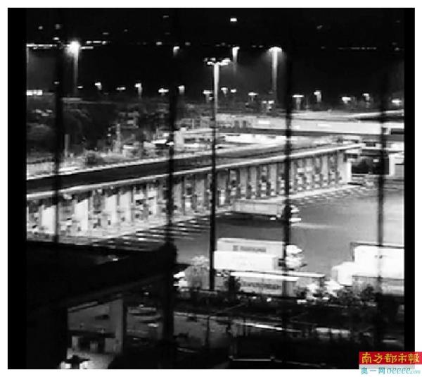 ↑居民家的窗口对着口岸,7月21日凌晨两点多听到很大的鸣笛声。 (市民视频截图)