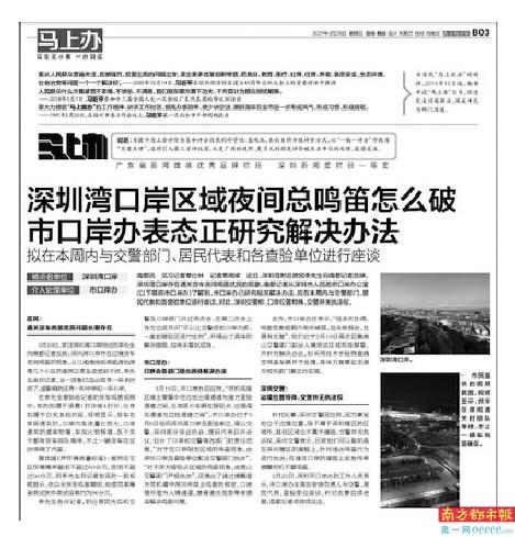 今年3月底,南都报道了深圳湾口岸区域货柜车司机通关时鸣笛扰民现象。市口岸办联合多部门研究并出台相应治理办法,取得一定成效。不过,近期南都记者又接到口岸附近居民反映,从5月下旬开始,半夜鸣笛现象出现反弹还加重。市口岸办再次回应,将加强巡逻,协调口岸查验单位共同对鸣笛司机进行教育。同时,对于交警部门无法前往执法、司机乱鸣笛现象具有随机性难于取证等难点,市口岸办将及时将情况反馈给港方运输署及深圳湾口岸港方入境处,由港方运输署协调货运协会加强对货运司机的教育,由港方入境处协调职能部门现场监管。